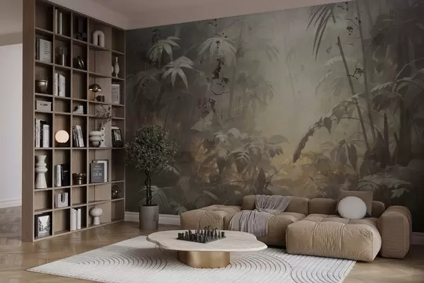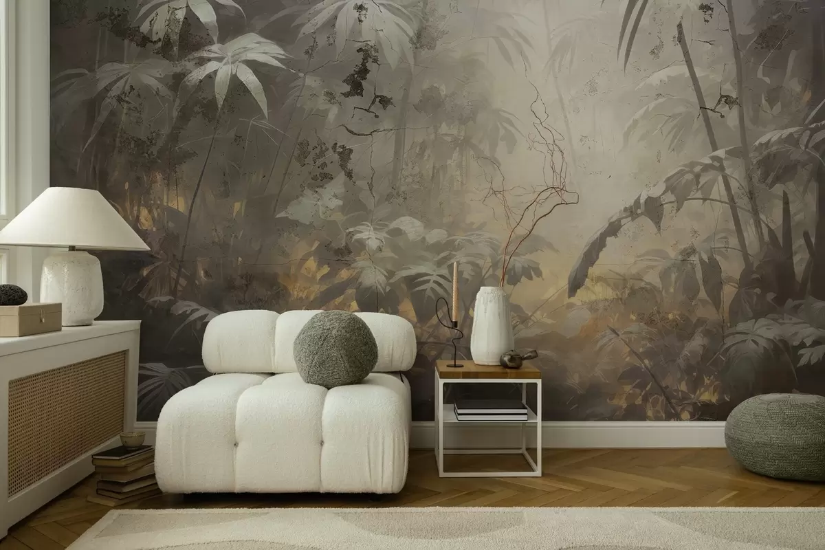 Murais de parede Selva pintada atrás de um muro de betão sujo Nr. w04833