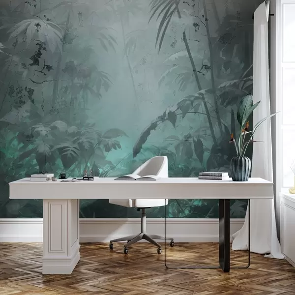 Murais de parede Selva pintada atrás de um muro de betão sujo Nr. w04833v1