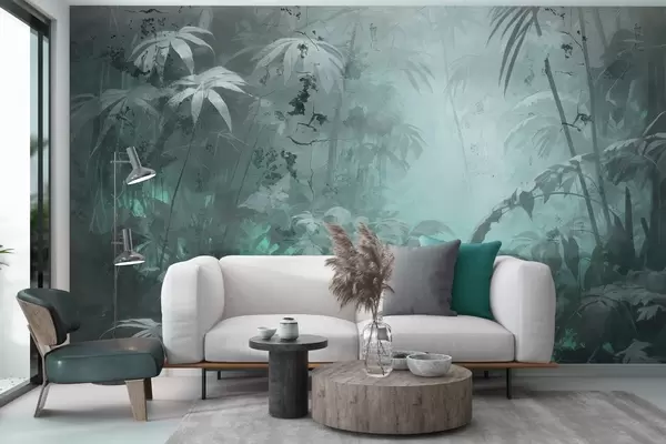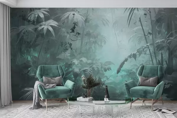 Murais de parede Selva pintada atrás de um muro de betão sujo Nr. w04833v1