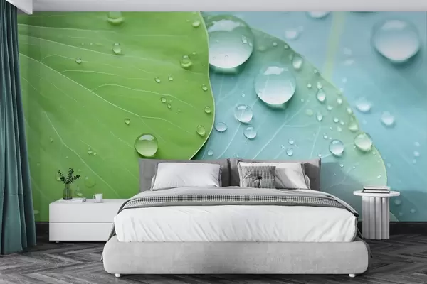 Murais de parede Gotas de água nas folhas macro aquarela Nr. w04838