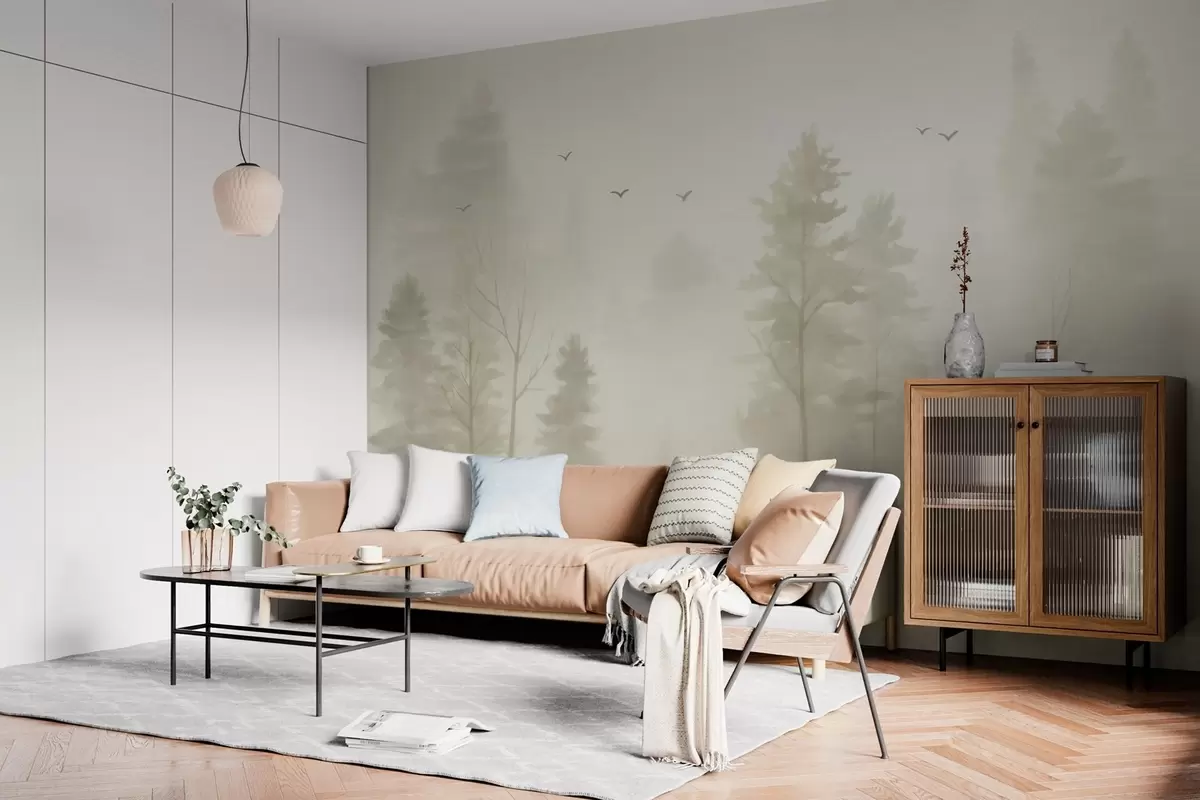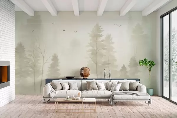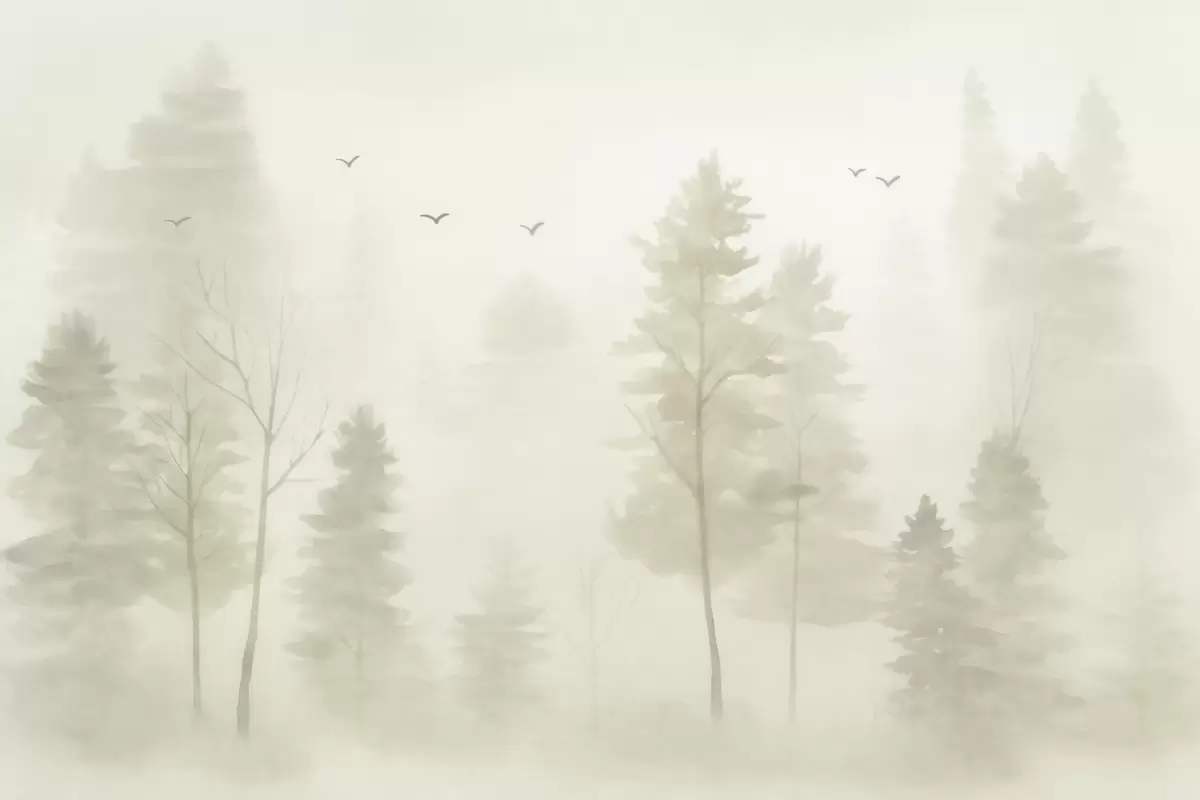 Murais de parede floresta aérea em tons de bege, ao estilo aquarela Nr. w04872