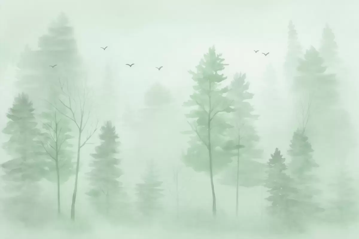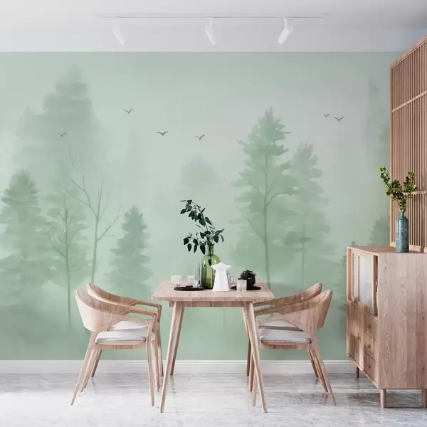 Murais de parede floresta aérea em tons de verde, estilo aquarela Nr. w04872v1