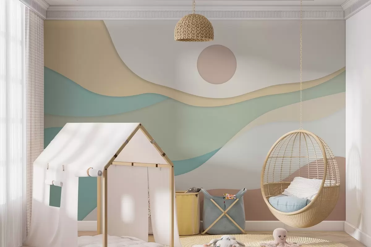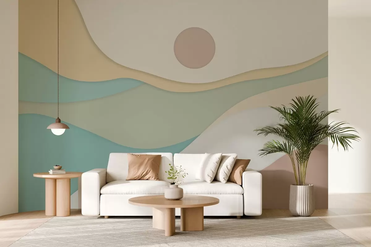 Murais de parede Abstração minimalista com formas suaves e ondulantes que lembram paisagens fluidas e dunas. Nr. w04874
