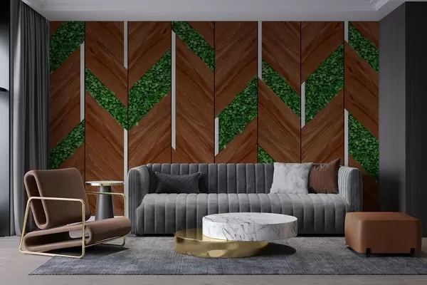 murais de parede imitação de painéis de madeira escura com inserções vegetais w04875v1