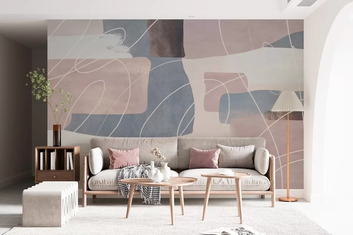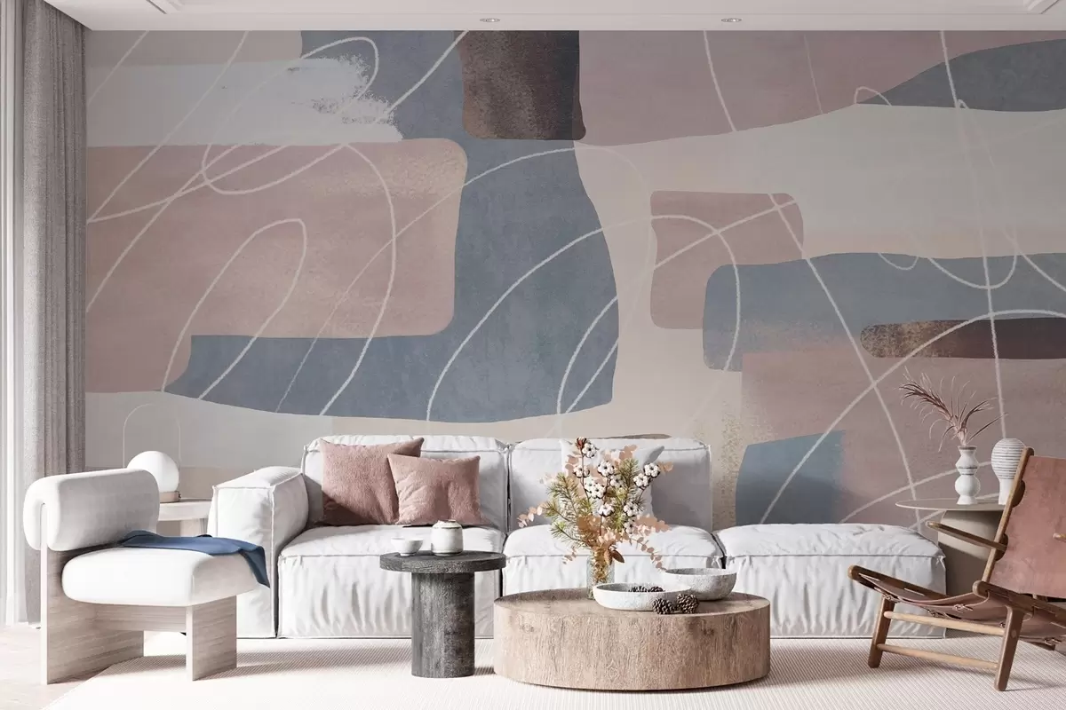 Murais de parede abstração moderna em tons de rosa pálido, cinza-azulado, bege e castanho Nr. w04877