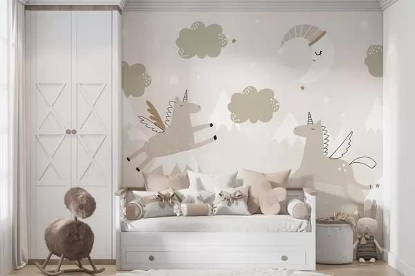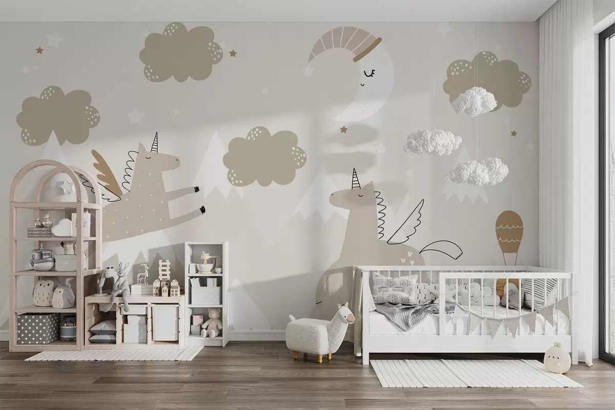 Murais de parede Lua adormecida, unicórnios e balões Nr. w04886