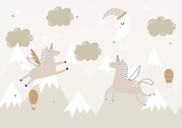 Murais de parede Lua adormecida, unicórnios e balões Nr. w04886