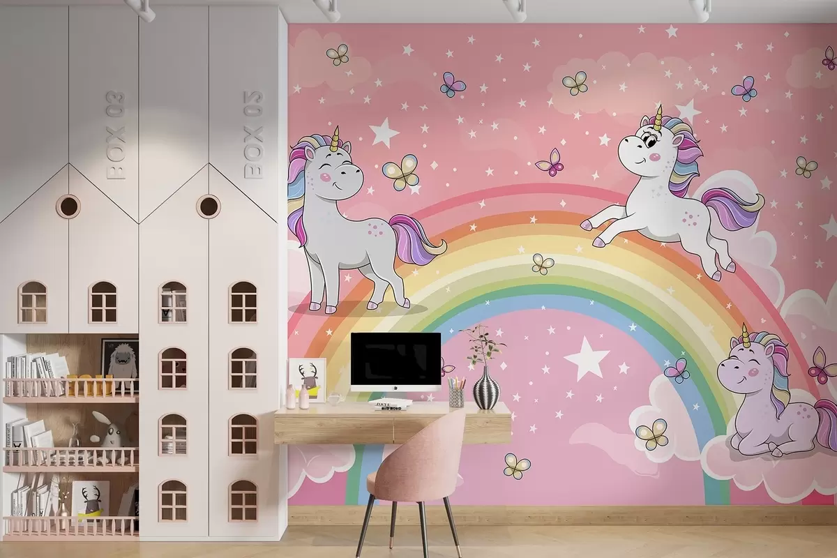 Murais de parede Unicórnios num arco-íris Nr. w04930