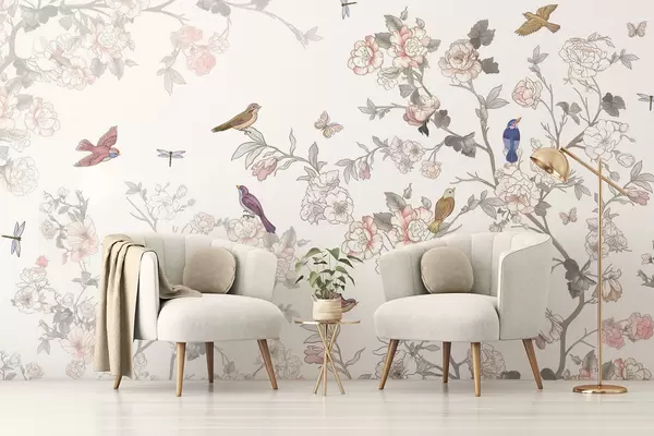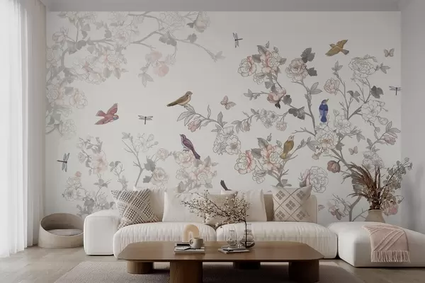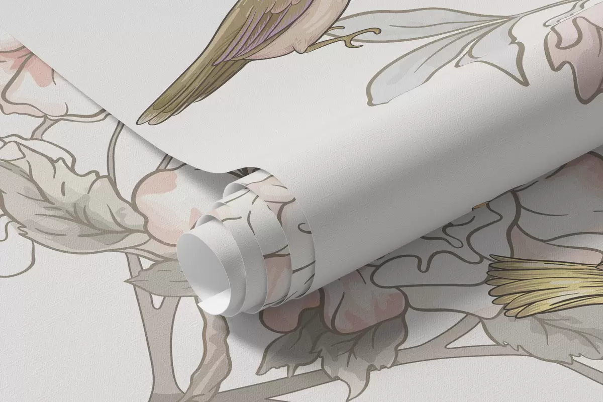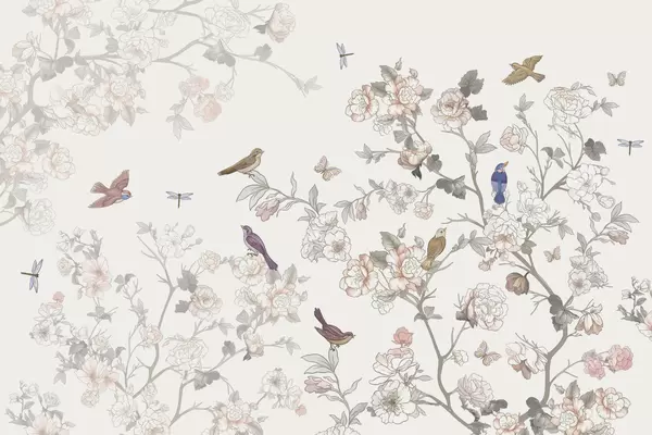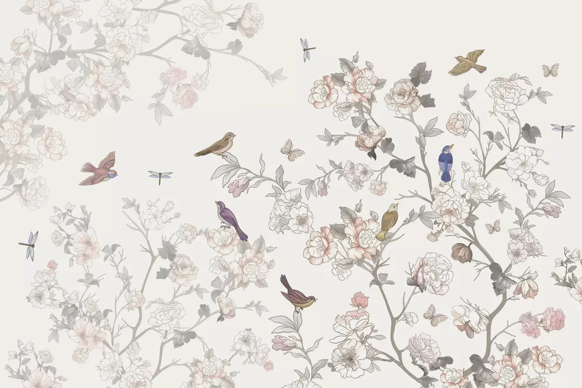Murais de parede Pássaros perto de ramos com flores Nr. w04939
