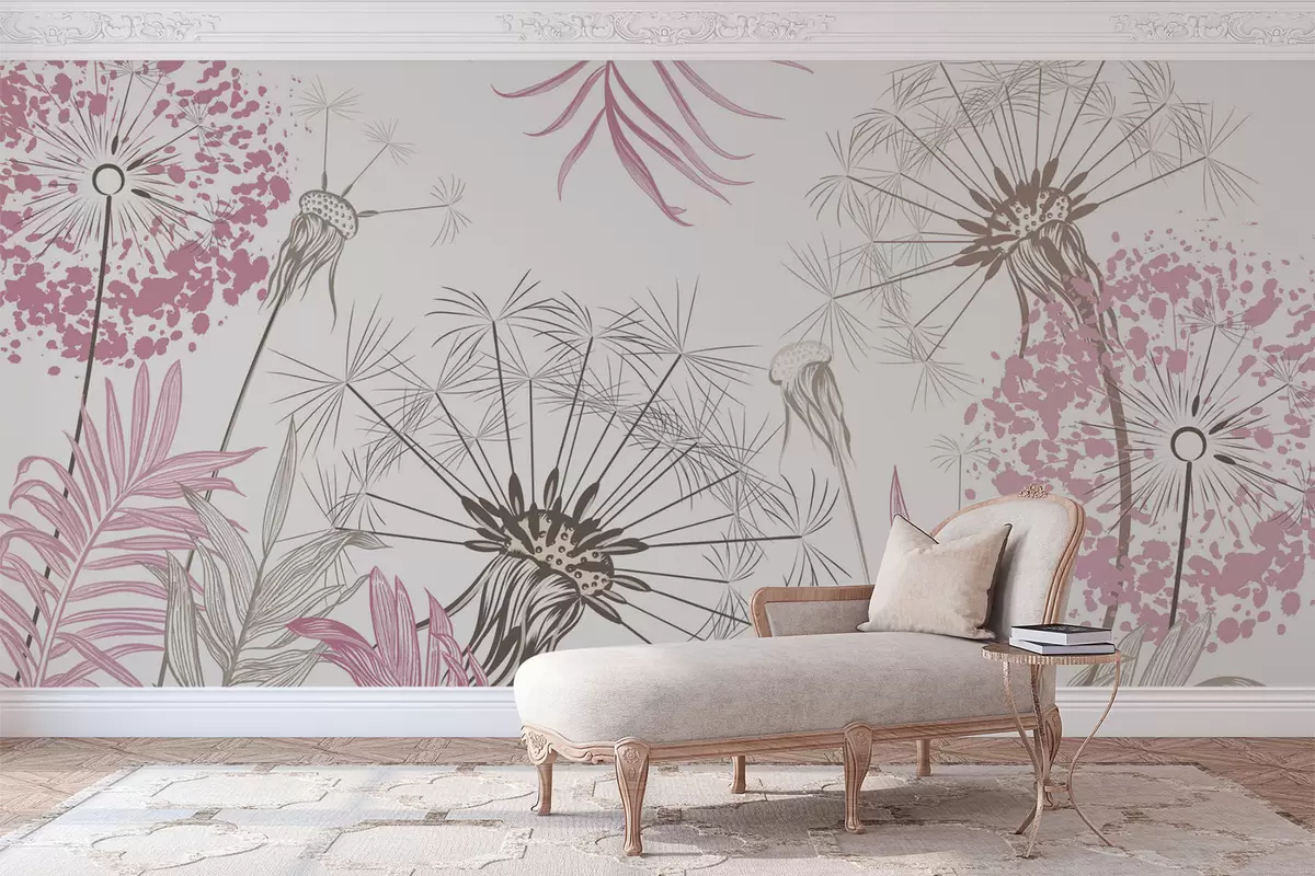 Murais de parede Dentes-de-leão entre a folhagem Nr. w04942v2