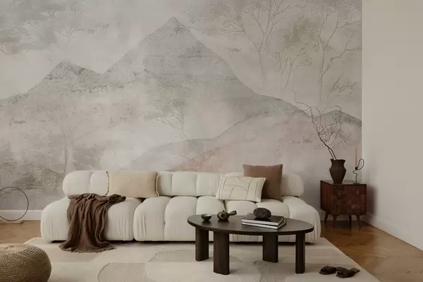 Murais de parede Montanhas e árvores em tons suaves de pastel envoltas em uma leve névoa Nr. w04954