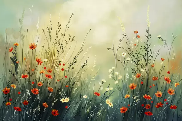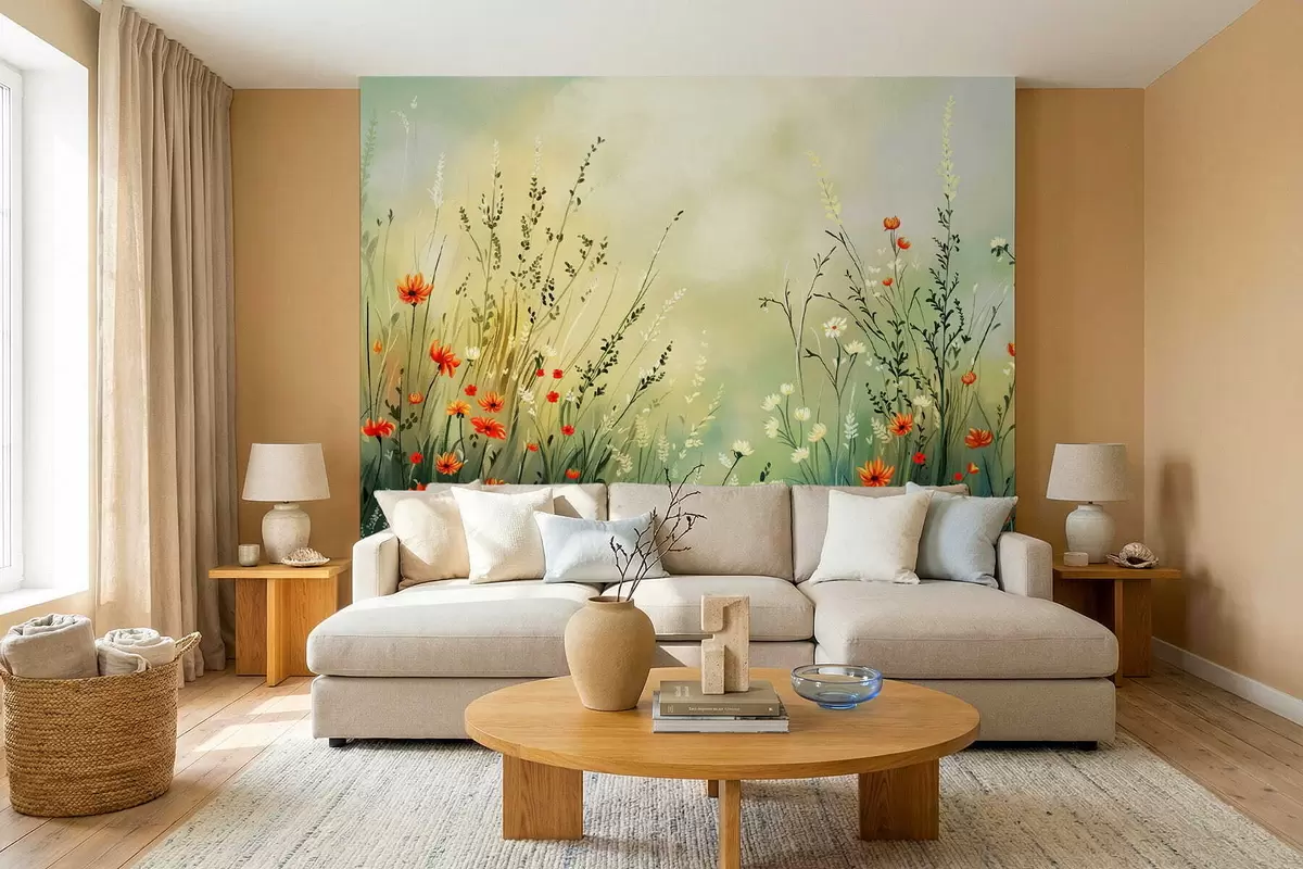 Murais de parede Flores e ervas do campo num estilo pictórico suave Nr. w05015