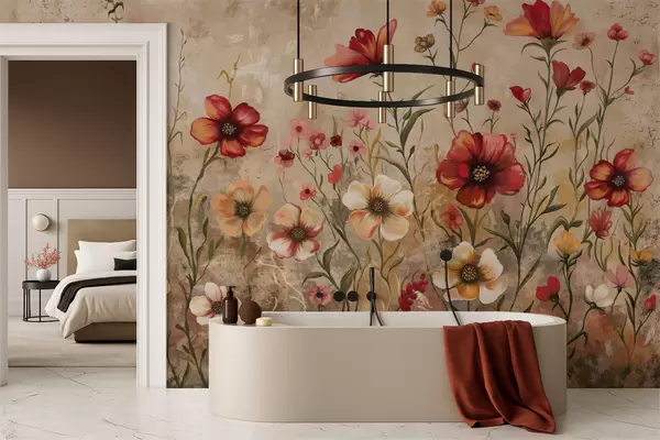 Murais de parede Composição floral com fundo texturizado em tons quentes Nr. w05016