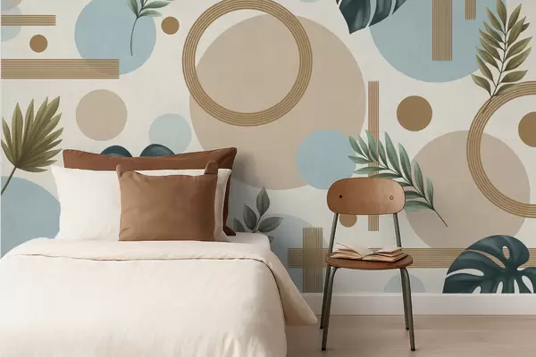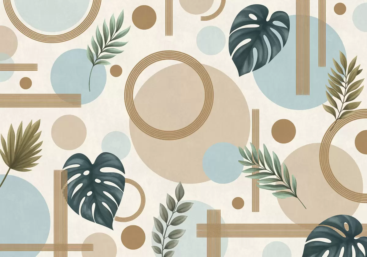 Murais de parede Padrão geométrico com folhas e círculos em tons suaves Nr. w05018