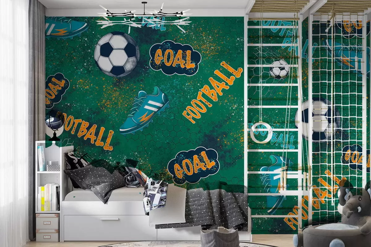 Murais de parede Padrão de futebol infantil em tons de verde Nr. w05037v1