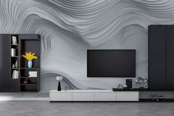 Murais de parede imitação de relevos volumosos em tons de cinza Nr. w05061