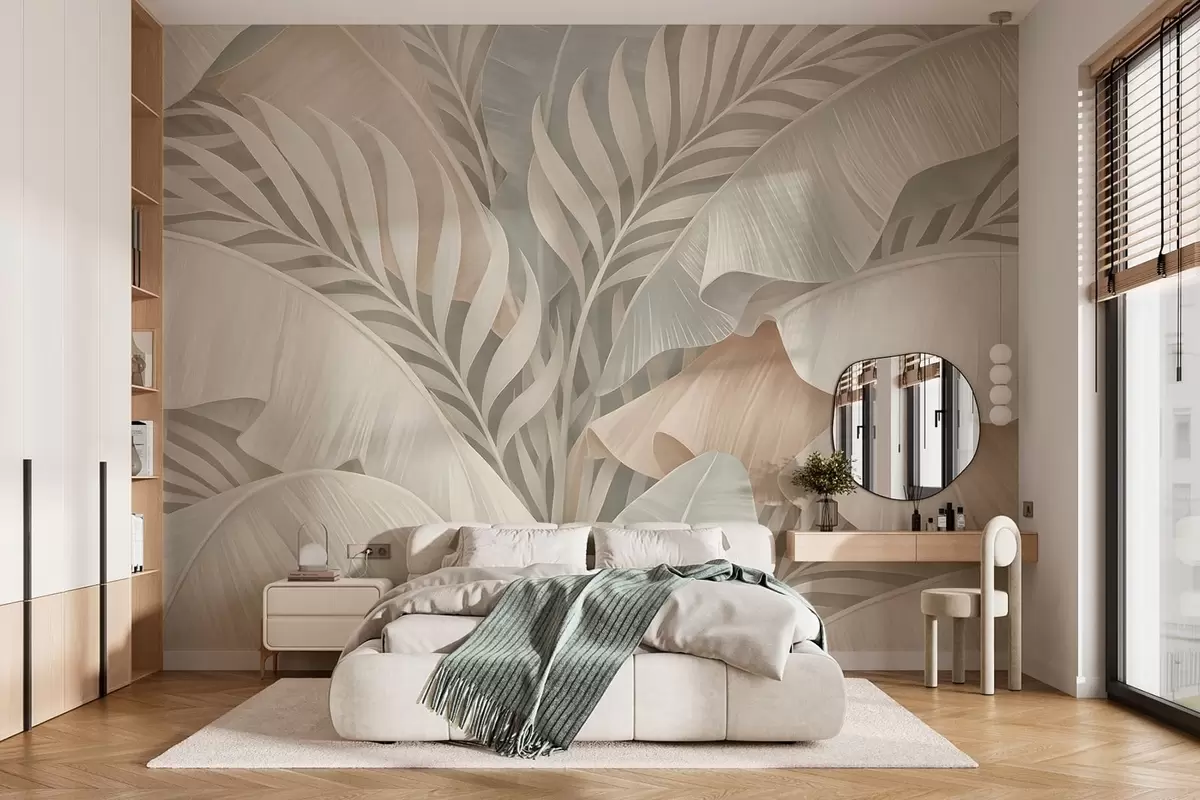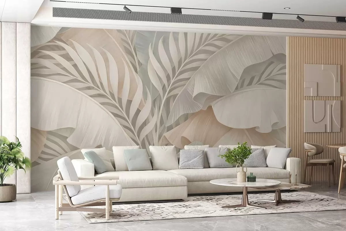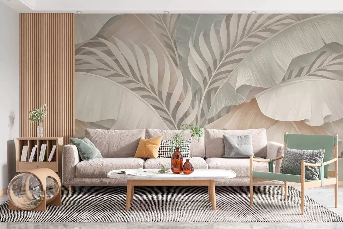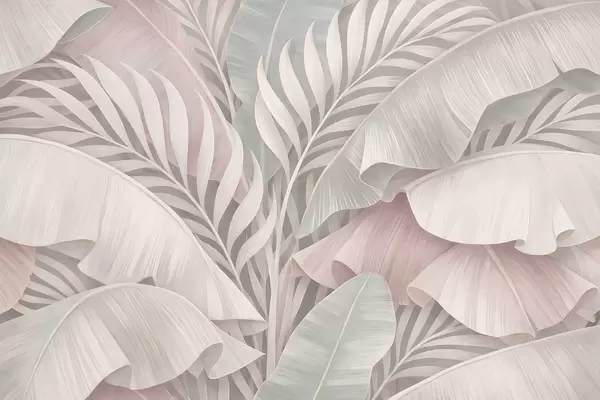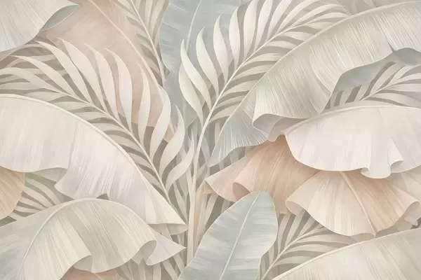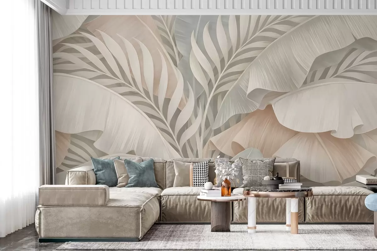 Murais de parede folhas tropicais grandes em tons de pêssego e turquesa opaco Nr. w05062