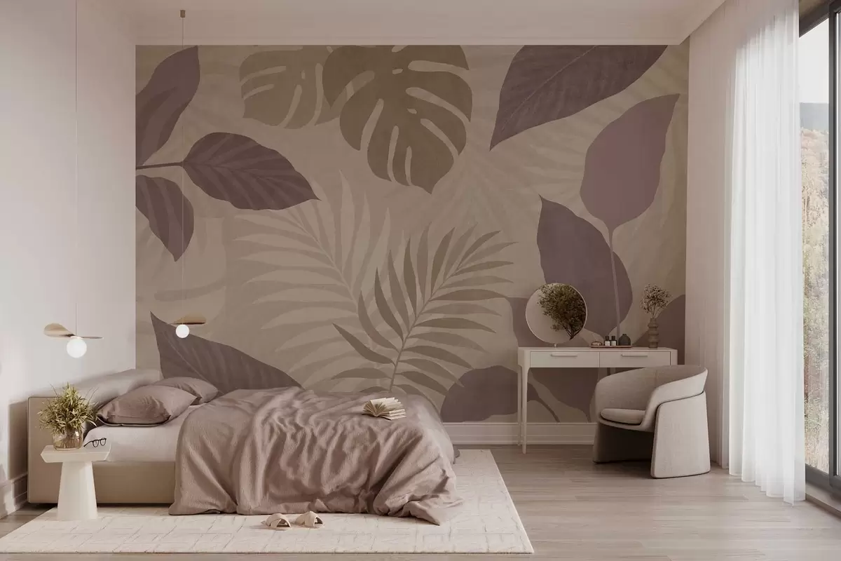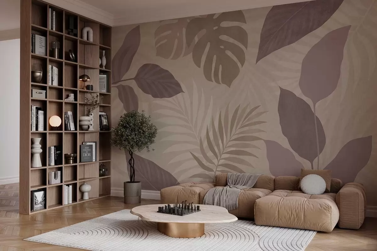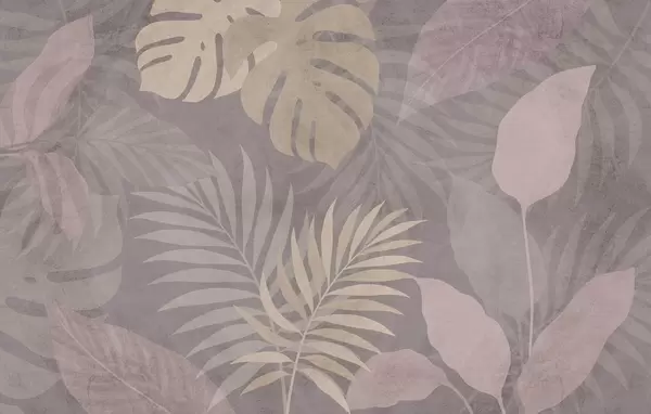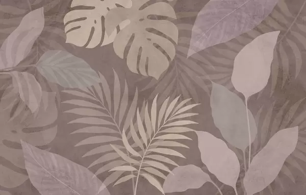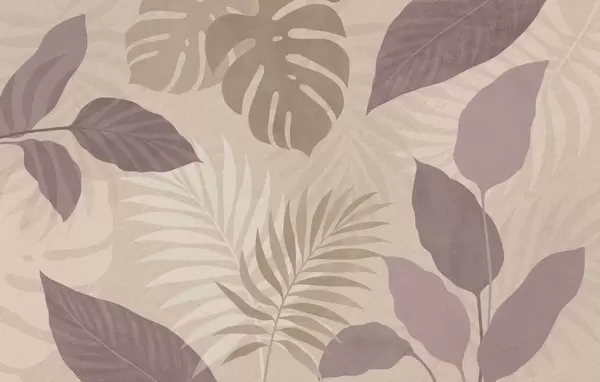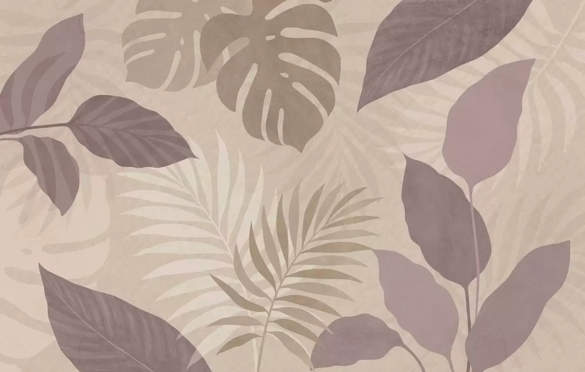 Murais de parede folhas tropicais texturizadas sobre fundo arenoso Nr. w05063