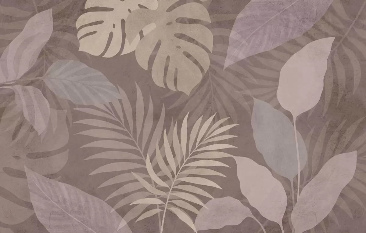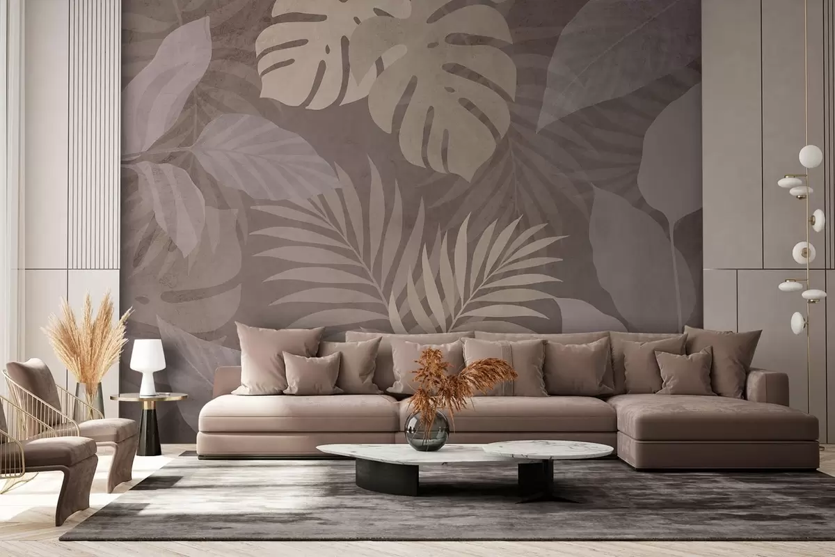 Murais de parede folhas tropicais texturizadas sobre um fundo chocolate Nr. w05063v2