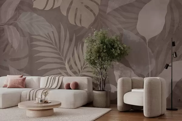 Murais de parede folhas tropicais texturizadas sobre um fundo chocolate Nr. w05063v2
