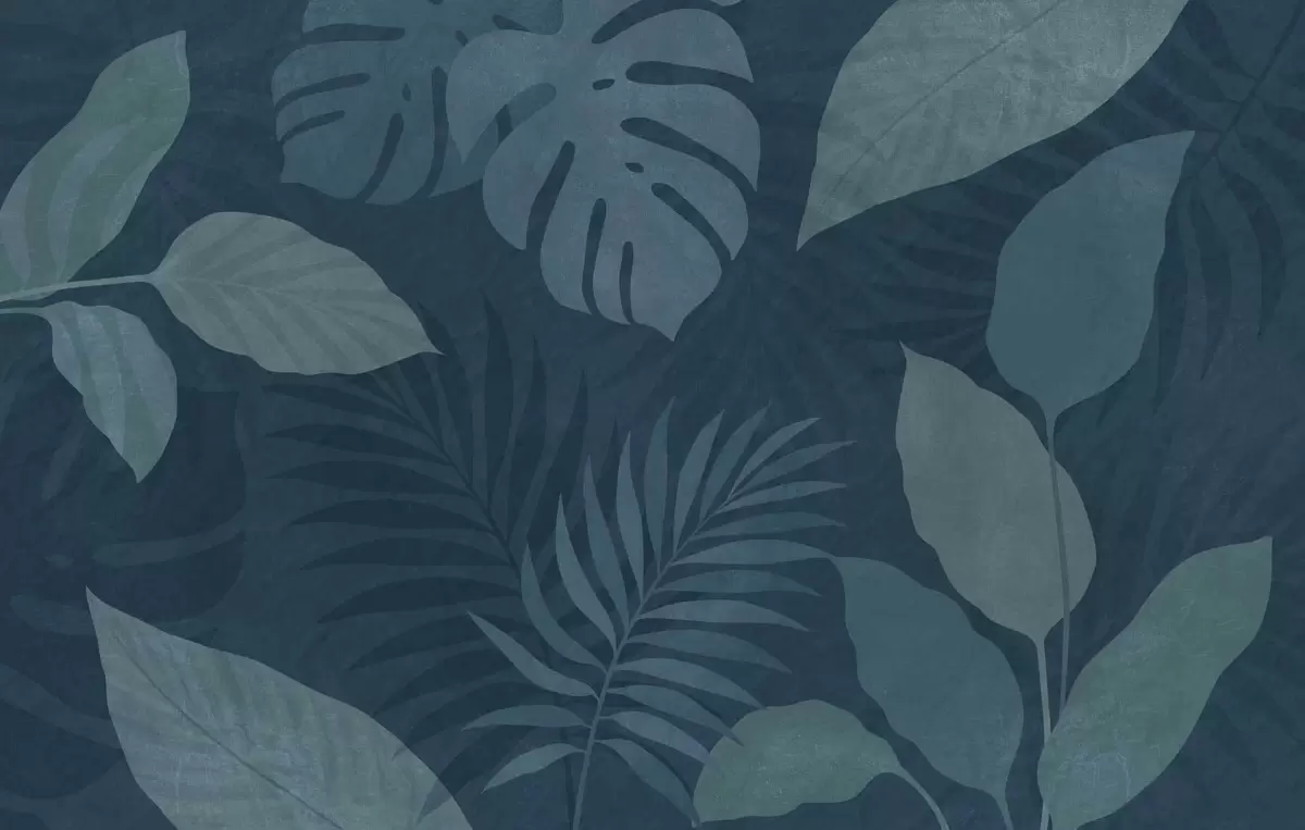 Murais de parede folhas tropicais texturizadas sobre um fundo azul escuro Nr. w05063v3