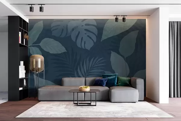 Murais de parede folhas tropicais texturizadas sobre um fundo azul escuro Nr. w05063v3
