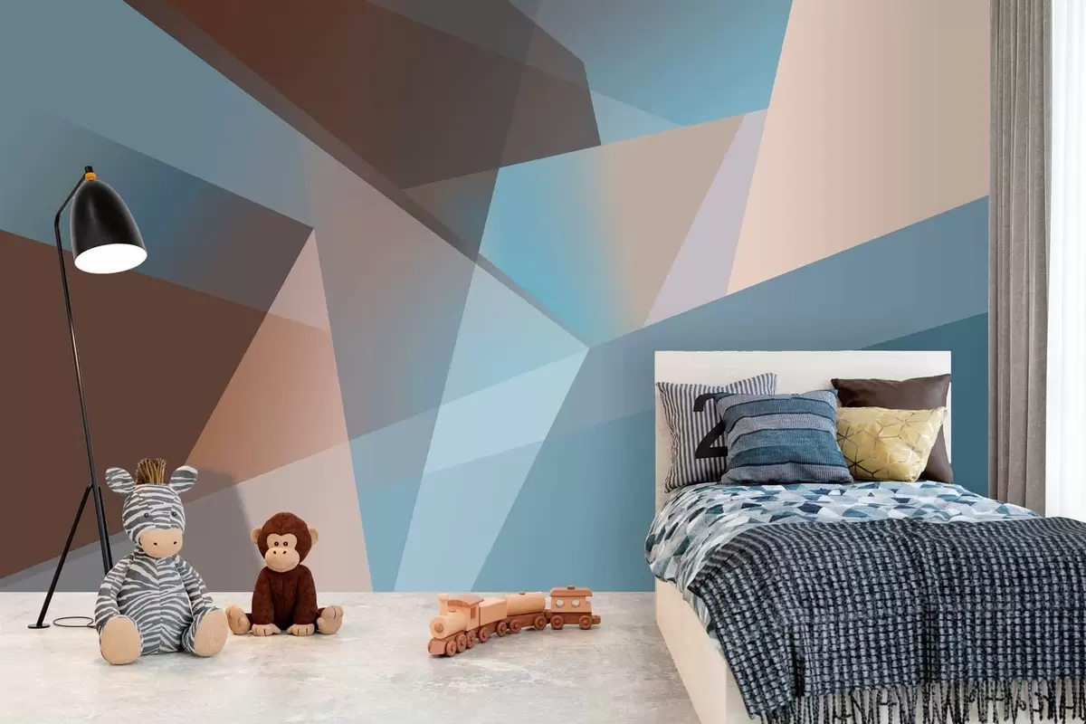 Murais de parede geometria abstrata em tons de azul e castanho Nr. w05064