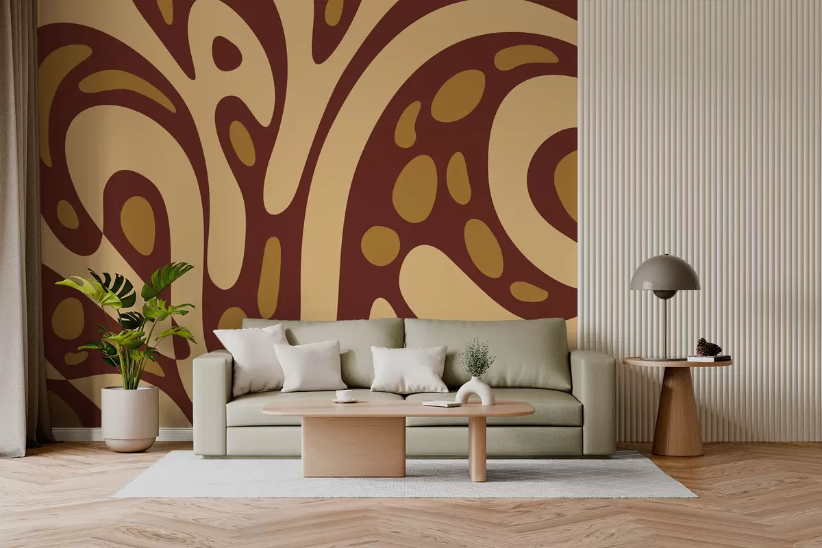 Murais de parede Padrão abstrato com formas em castanho e bege Nr. w05071v2