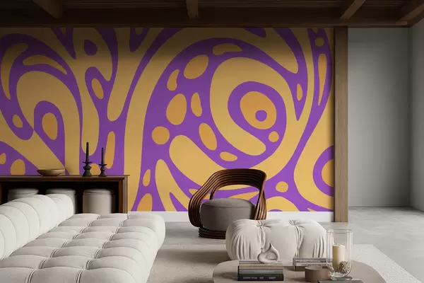 Murais de parede Padrão abstrato com formas fluidas em duas cores Nr. w05071v3