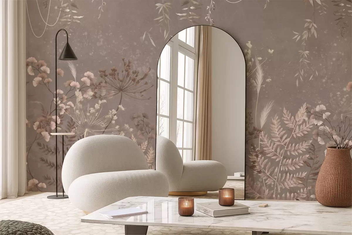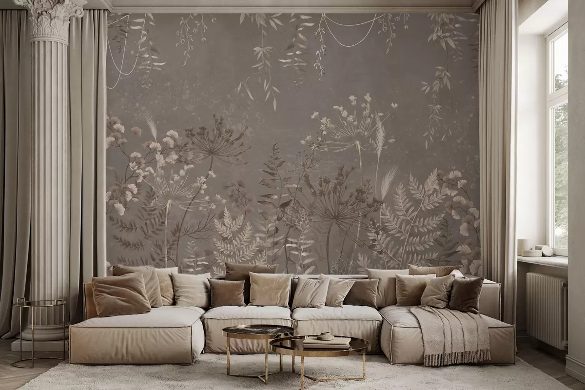 Murais de parede Padrão botânico leve com flores e folhas Nr. w05092v1