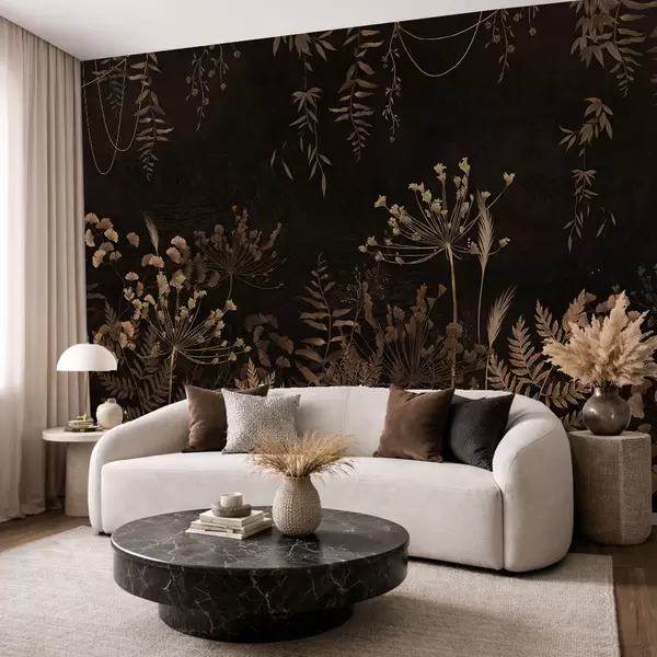 Murais de parede Padrão botânico escuro com flores e ervas Nr. w05092v3