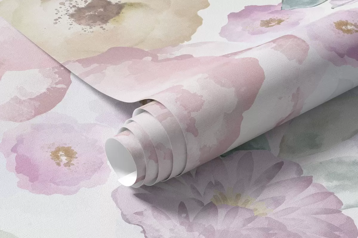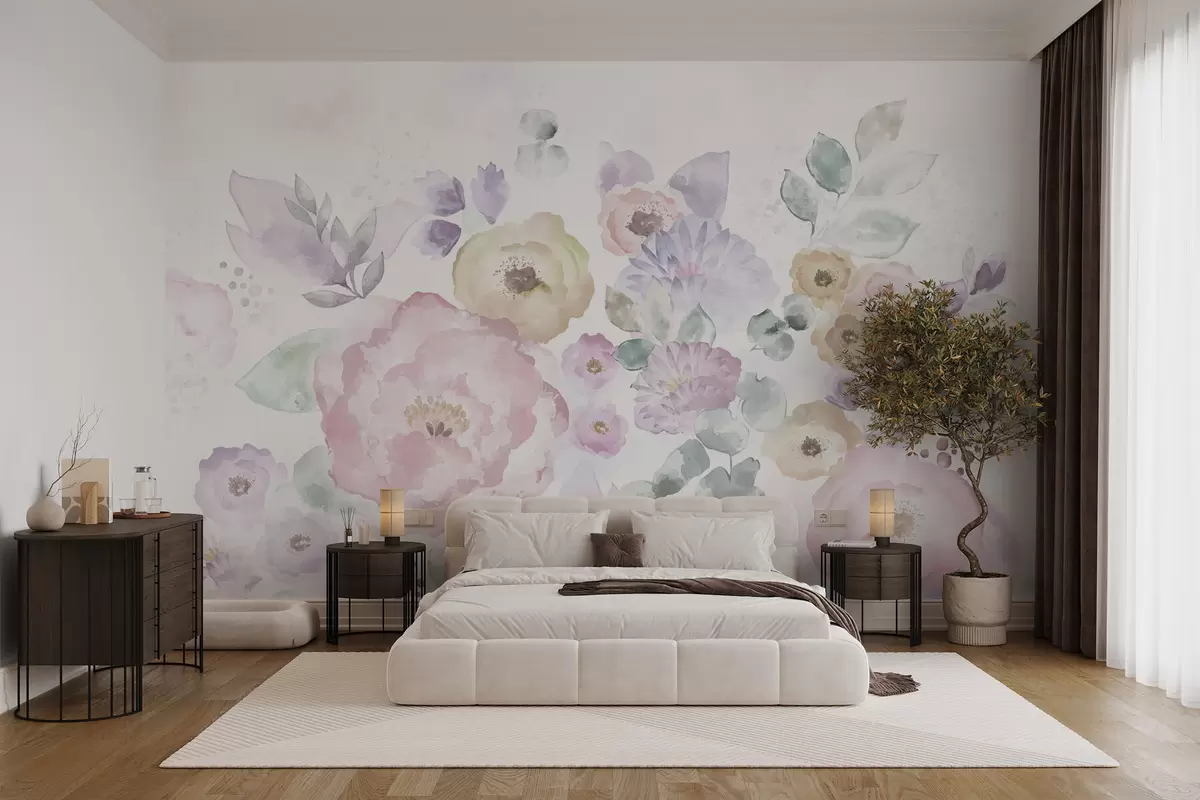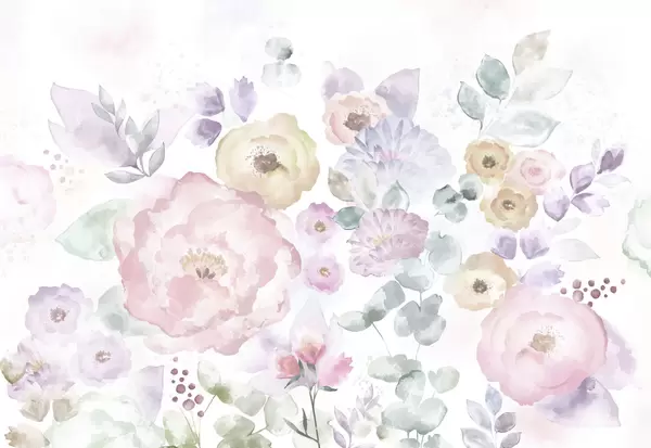 Murais de parede Composição suave em aquarela com flores e folhas Nr. w05093