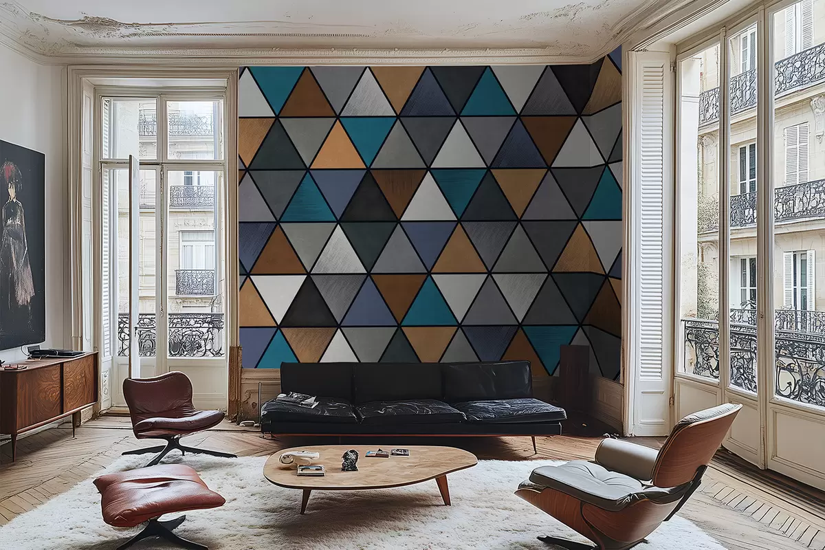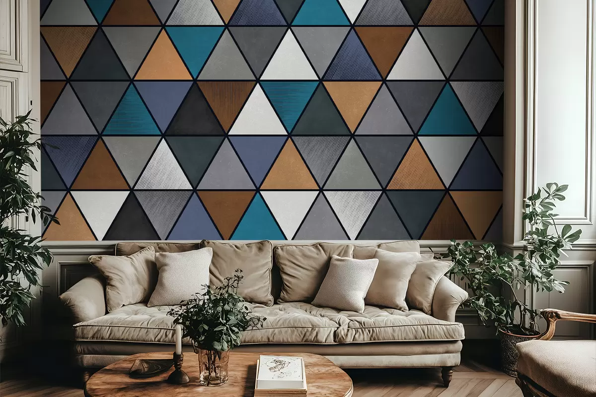 Murais de parede Padrão geométrico triangular em tons azuis e quentes Nr. w05095