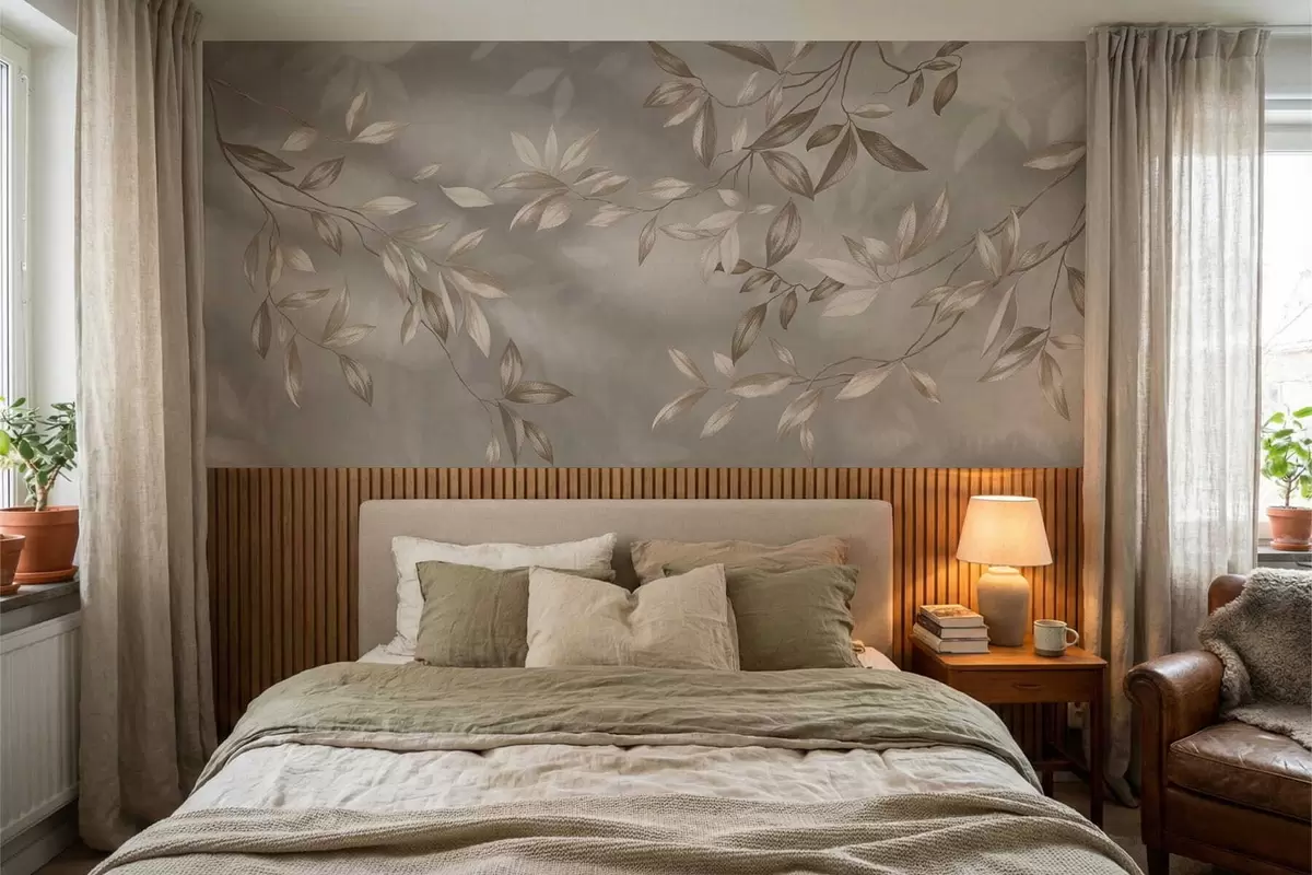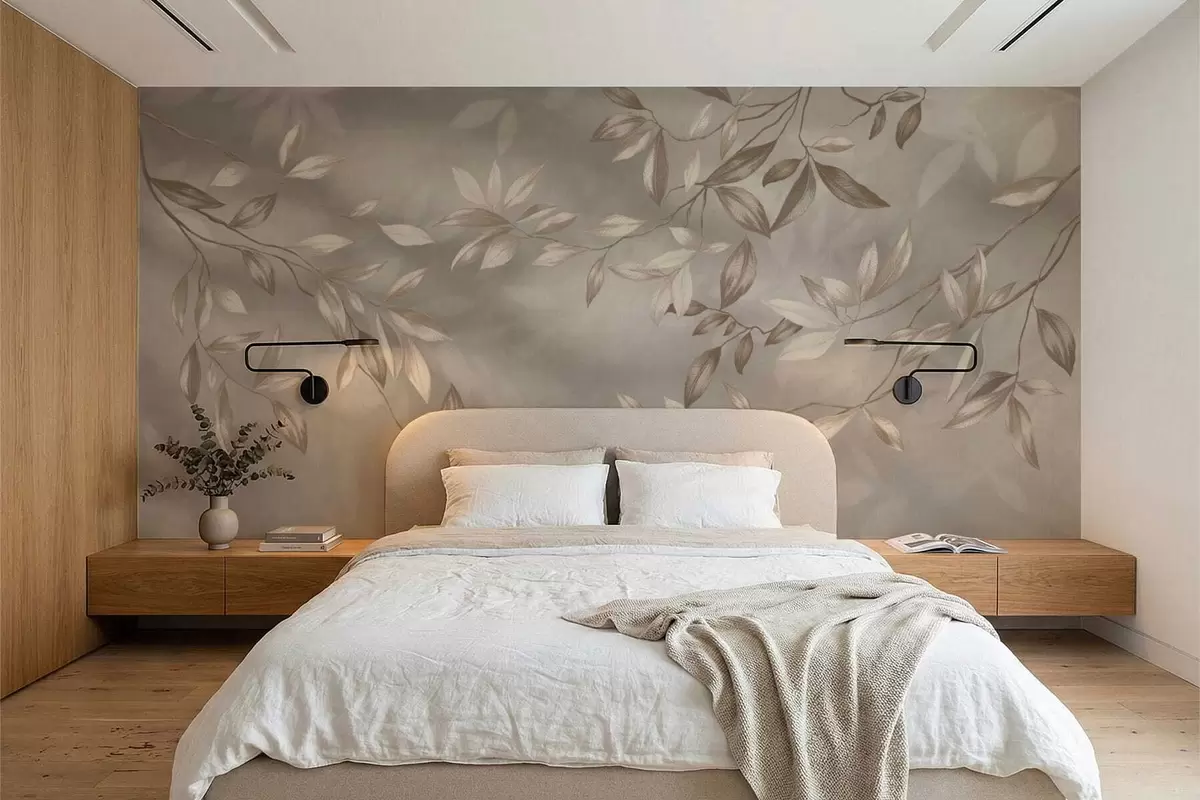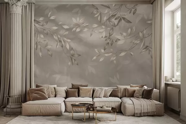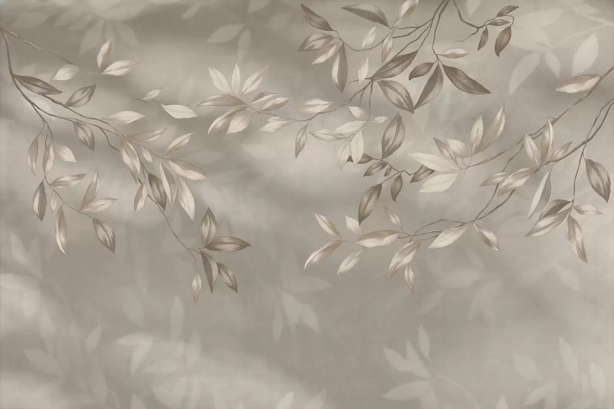 Murais de parede Galhos elegantes com folhas em tons de bege sobre um fundo claro Nr. w05113