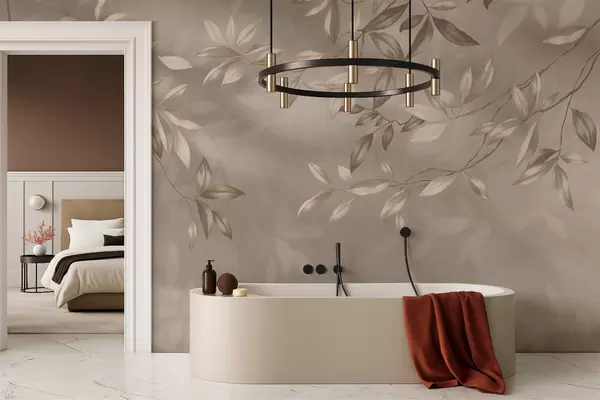 Murais de parede Galhos elegantes com folhas em tons de bege sobre um fundo claro Nr. w05113