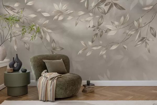Murais de parede Galhos elegantes com folhas em tons de bege sobre um fundo claro Nr. w05113