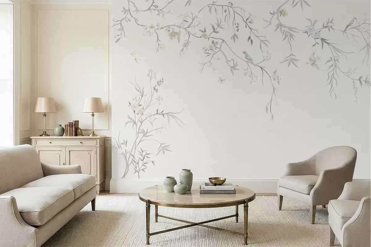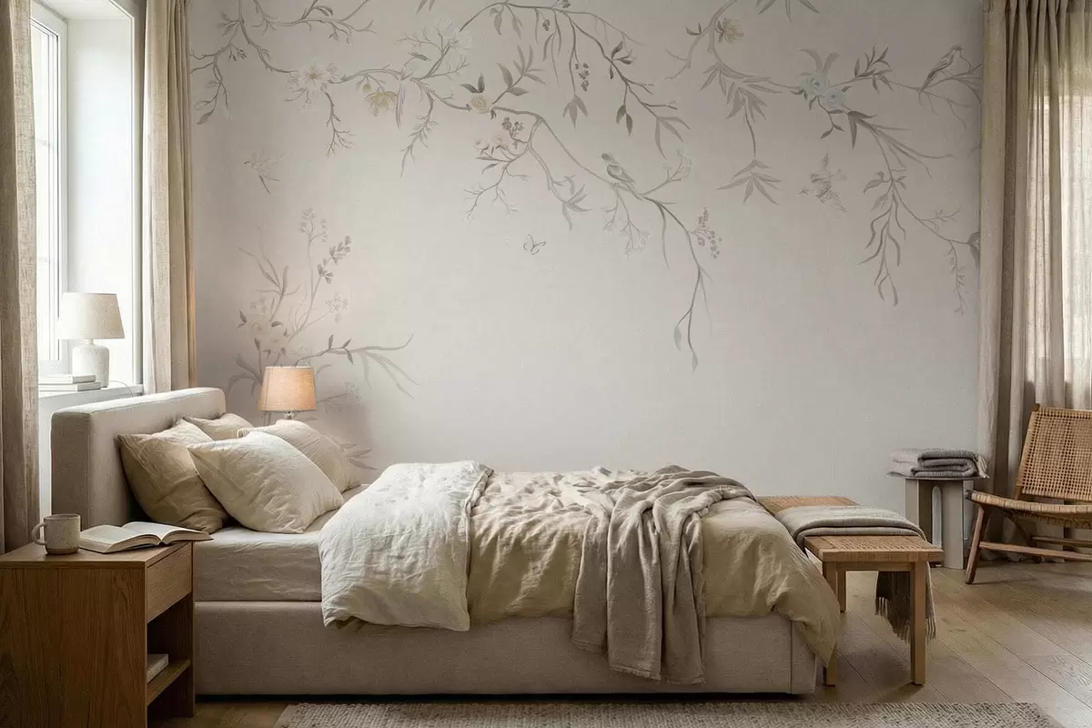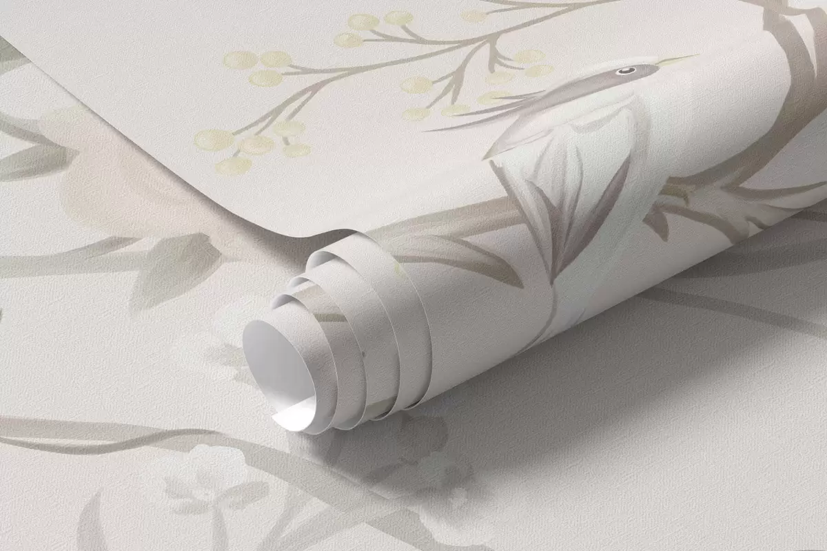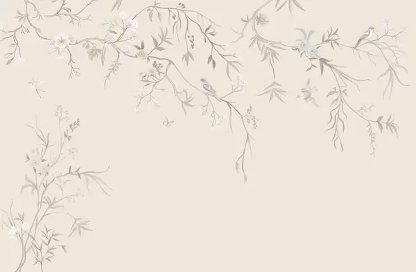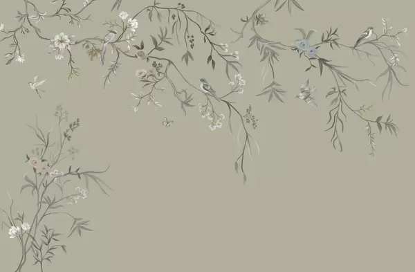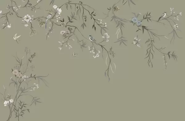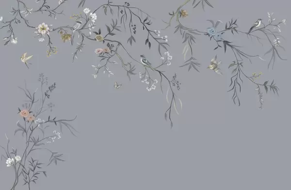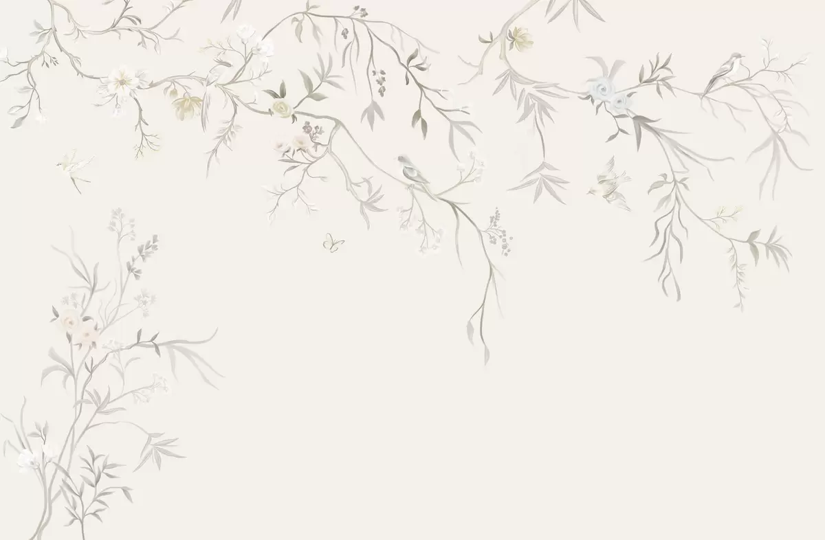 Murais de parede Flores delicadas e pássaros sobre um fundo de giz Nr. w05127