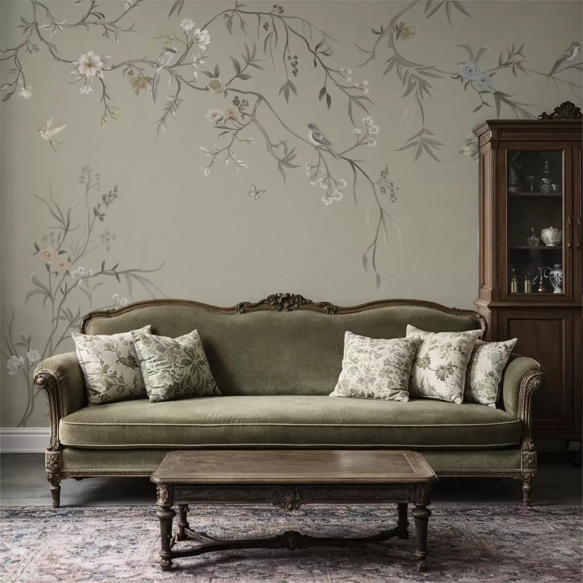 Murais de parede Padrão floral com pássaros sobre fundo frio Nr. w05127v6