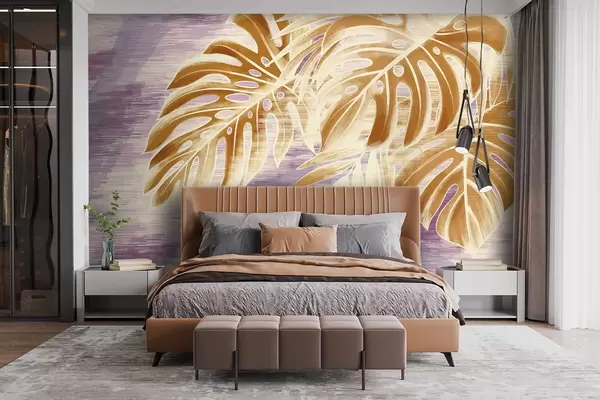 Murais de parede Folhas em tons quentes de laranja sobre fundo roxo Nr. w05130v2