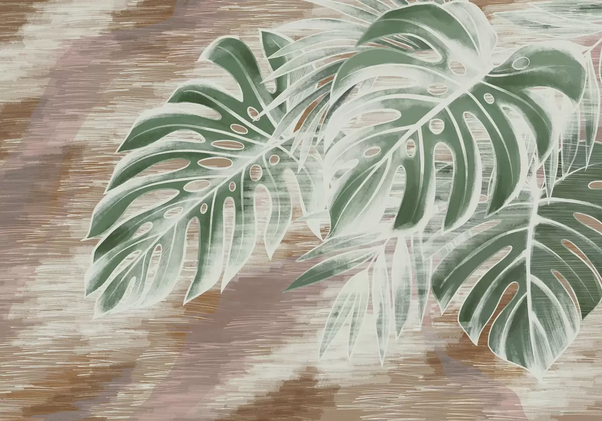 Murais de parede Folhas verdes sobre uma base abstrata com textura quente Nr. w05130v3