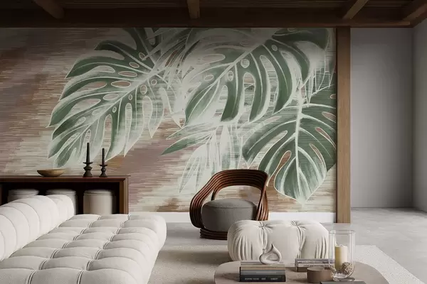 Murais de parede Folhas verdes sobre uma base abstrata com textura quente Nr. w05130v3