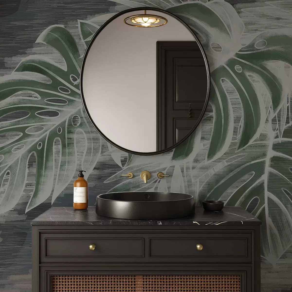 Murais de parede Folhas verdes escuras sobre um fundo escuro texturizado Nr. w05130v4