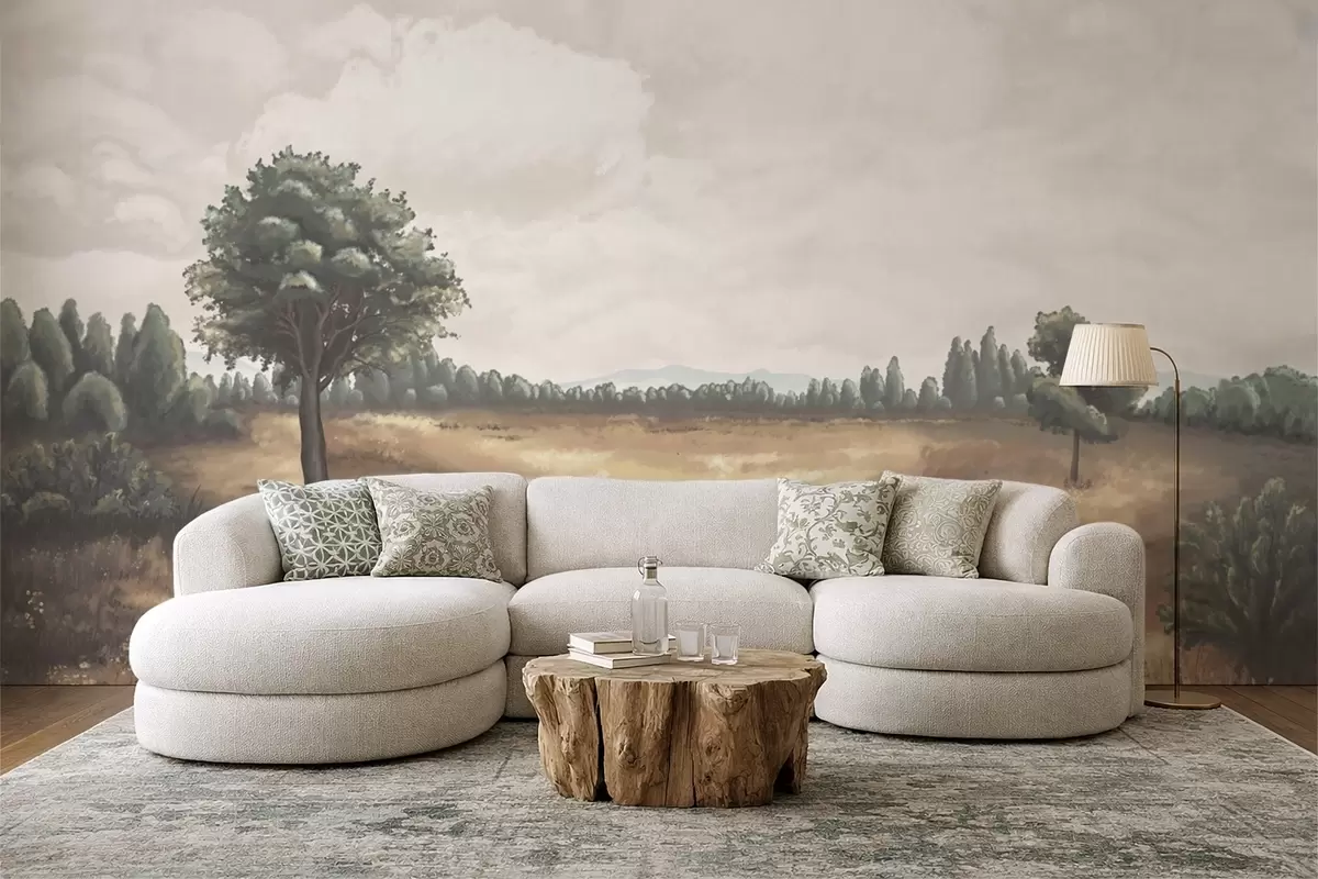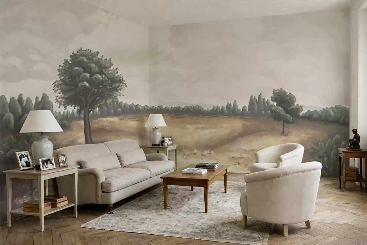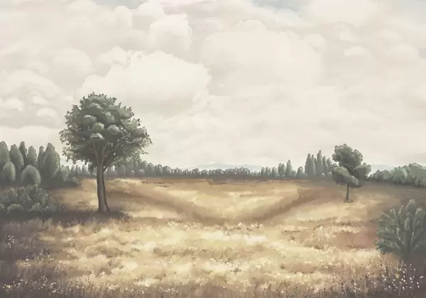 Murais de parede Paisagem pintada com árvores e campo aberto Nr. w05131