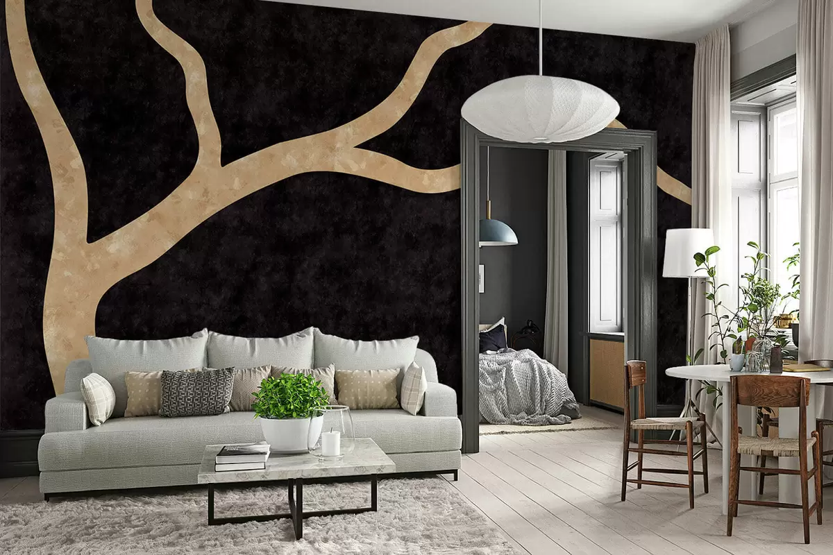 Murais de parede Ramo claro sobre fundo preto Nr. w05144v4