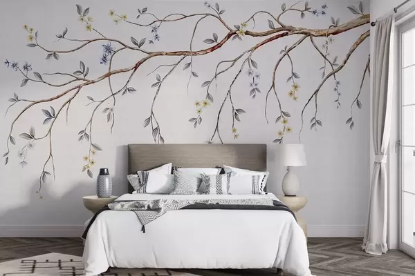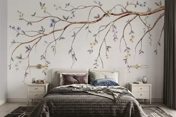 Murais de parede Galhos finos com pequenas flores sobre fundo claro Nr. w05145