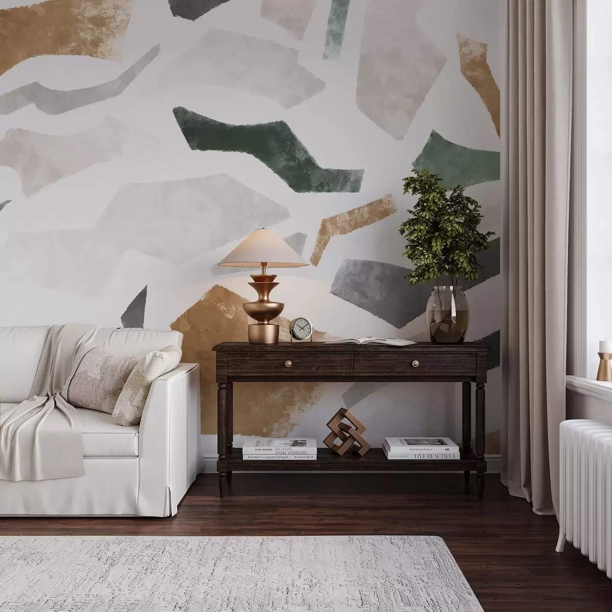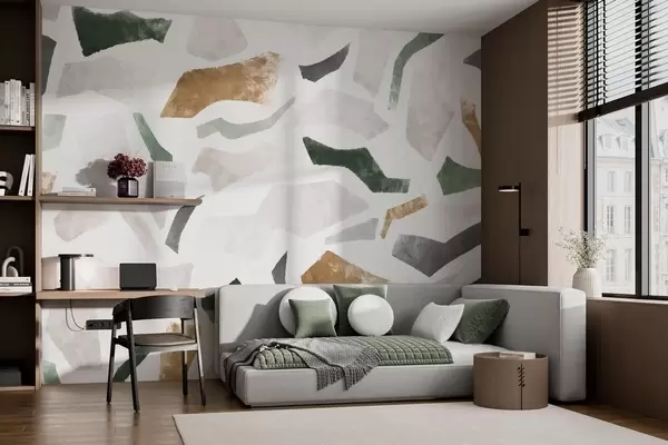 Murais de parede Fragmentos abstratos com textura em tons de verde e bege Nr. w05146