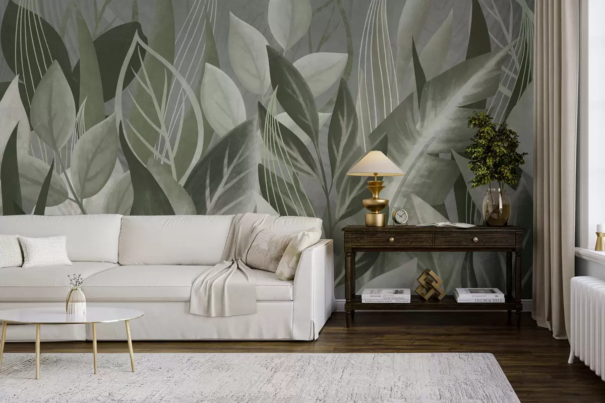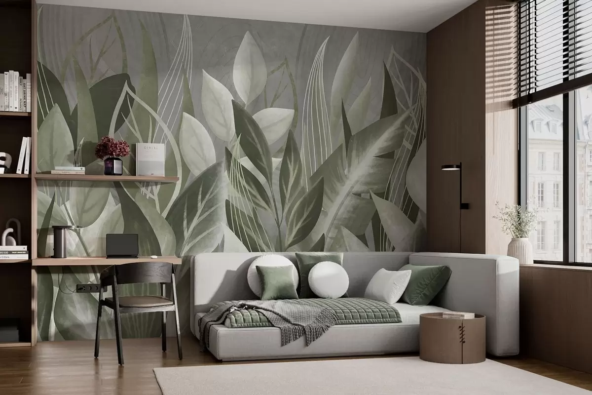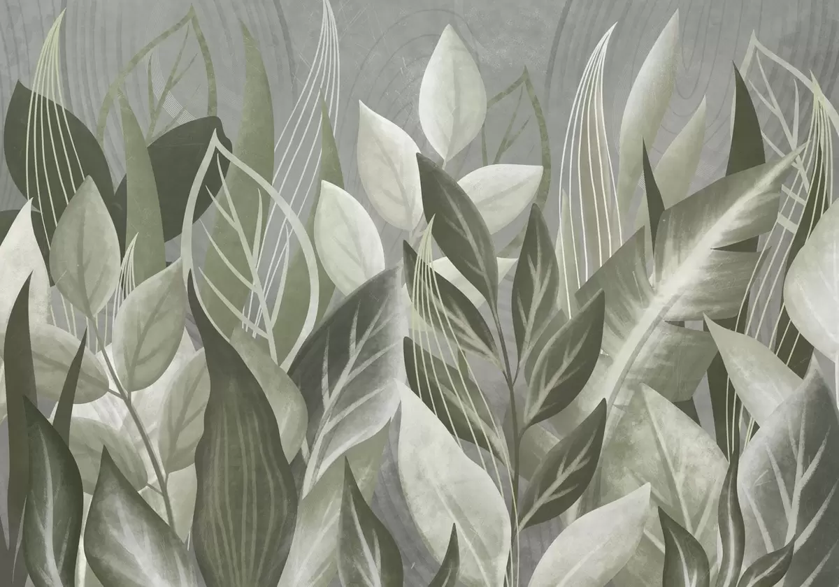 Murais de parede Folhas abstratas em tons de cinzento-esverdeado Nr. w05148v1