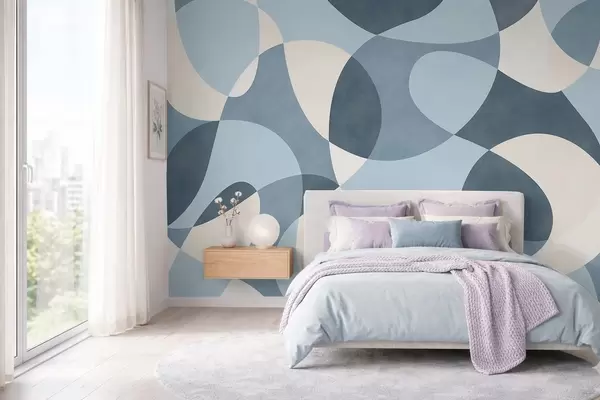 Murais de parede Padrão abstrato com formas arredondadas em tons de azul Nr. w05149v2