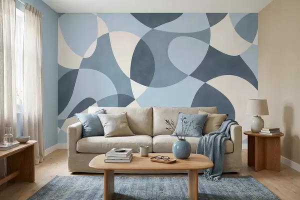 Murais de parede Padrão abstrato com formas arredondadas em tons de azul Nr. w05149v2