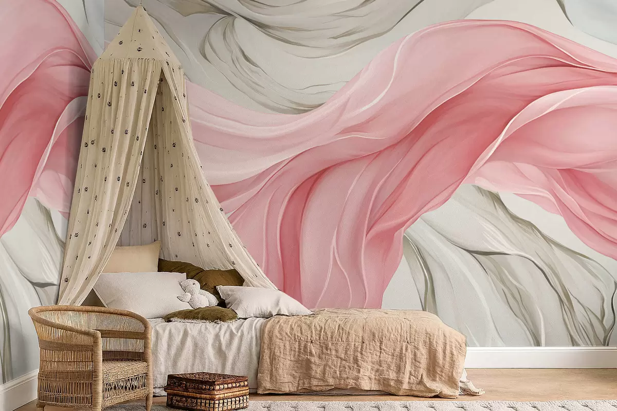 Murais de parede Ondas de tecido rosa esvoaçante Nr. w05152v2
